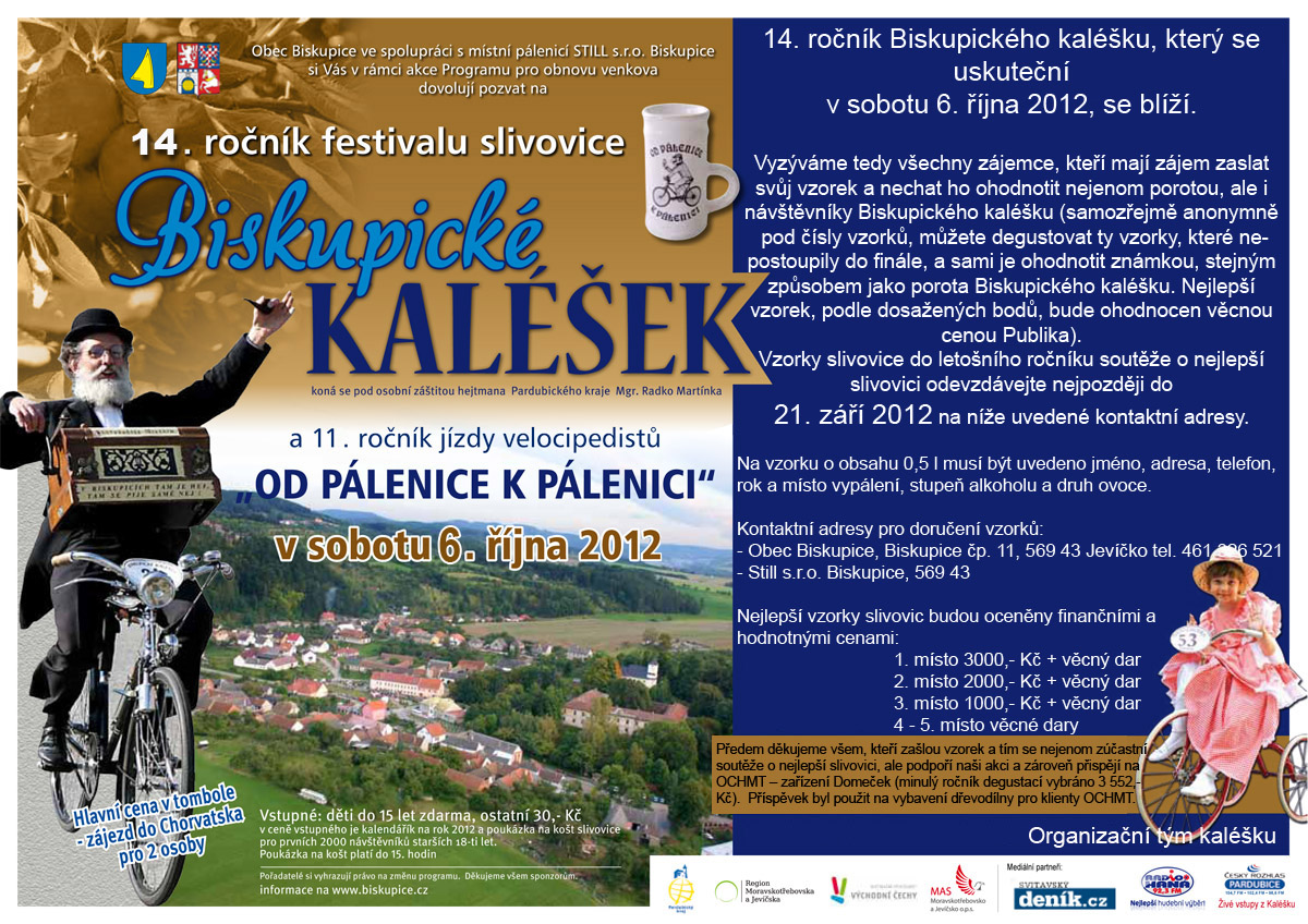 14. ročník Biskupického kaléšku se uskuteční v sobotu 6. října 2012. Plakát naleznete v příloze.