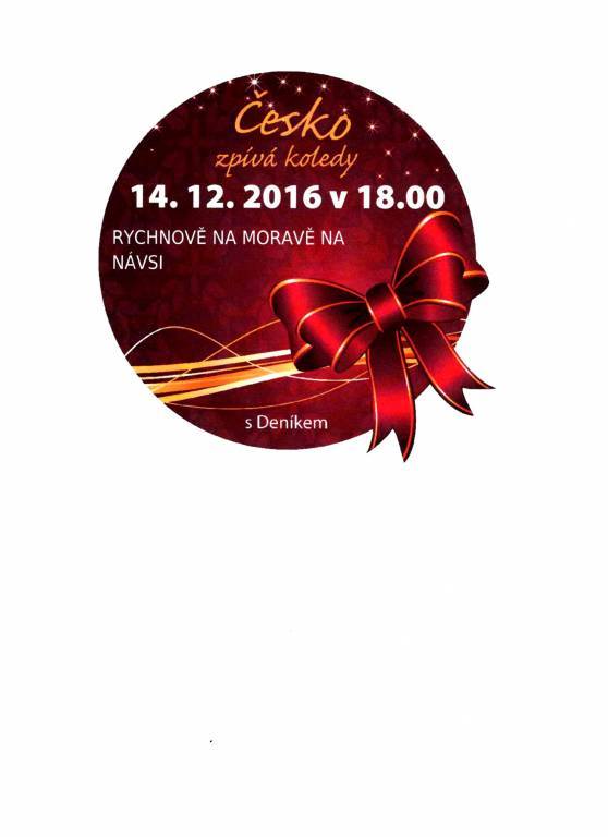 Srdečně zveme všechny občany na společné zpívání vánočních koled, které se koná ve středu 14. prosince 2016 od 18:00 hodin na návsi. Naše obec se zapojila již po třetí do projektu Česko zpívá koledy s regionálním deníkem. Tentokrát nás hudebně doprovodí uznávaná učitelka hudby, paní Tamara Mengrová. Na návsi budou k dispozici texty zpívaných koled, stejně tak, jako teplé občerstvení. Po celou dobu akce bude zprístupněno peklo a nebeská komnata, tentokrát bez nadpřirozených bytostí. Plakát naleznete v příloze. Mapu měst a obcí zapojených do projektu naleznete zde.