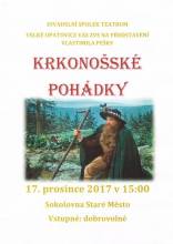 Divadelní spolek Teatrum Velké Opatovice vás zve na představení Vlastimila Pešky Krkonošské pohádky, které se koná 17. prosince 2017 v 15:00 v Sokolovně Staré Město. Vstupné dobrovolné.