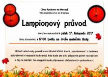 Obec Rychnov na Moravě Vás srdečně zve na tradiční Lampionový průvod, který se uskuteční v pátek 17. listopadu 2017. Sraz účastníků je jako vždy na dvoře mateřské školy v 17:00 hodin. Ze dvora se vypravíme, na dětské hřiště a poté k hospodě Na hranici, kde bude připraveno občerstvení.