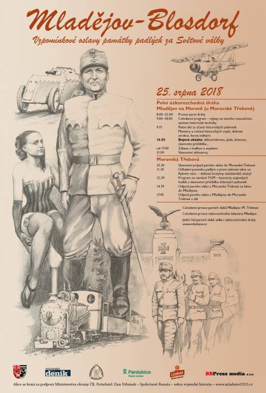 Průmyslové muzeum Mladějov a Obec Mladějov na Moravě vás zvou na vzpomínkovou akci památky padlých za Světové války, která se koná 25. srpna 2018 v Mladějově na Moravě a část v Moravské Třebové. Více informací na plakátu.