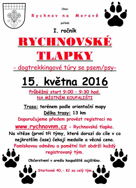Startovné: 40,- Kč na tým (pes/psy a psovod popřípadě další doprovod)