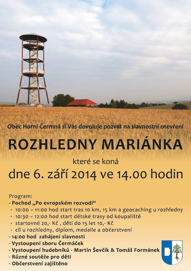 Slavnostní otevření ROZHLEDNY MARIÁNKA - HORNÍ ČERMNÁ