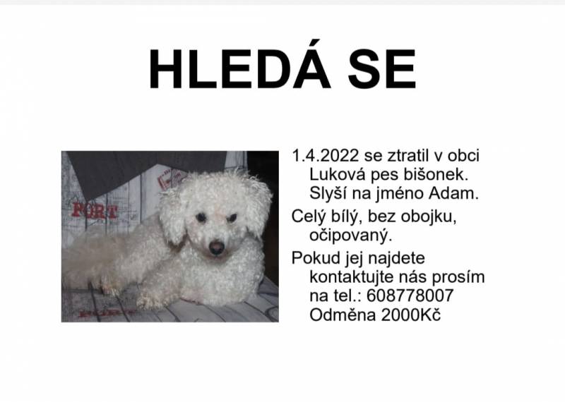 Ztracený pes v obci Luková