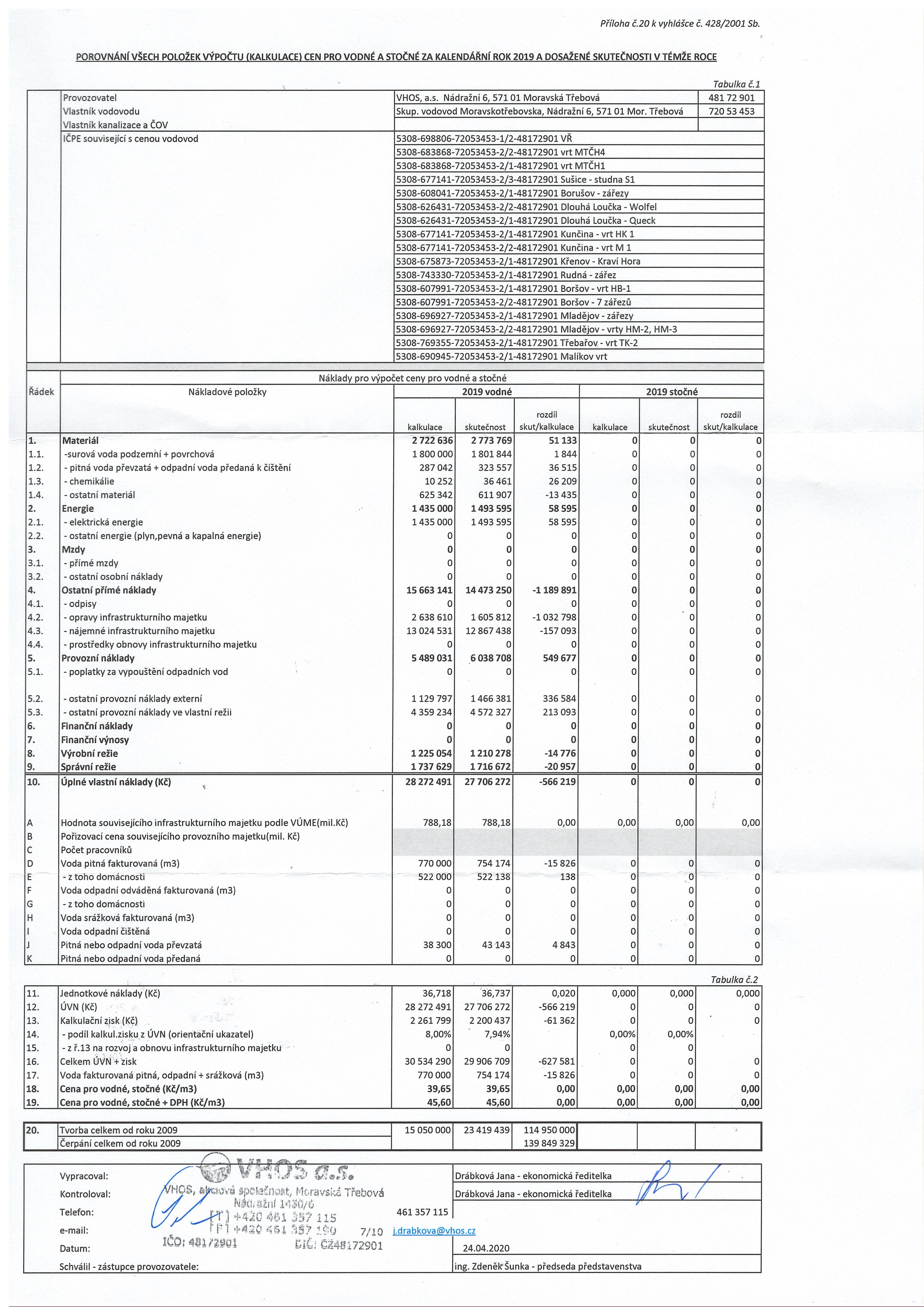 14 - 2020 Výsledek hospodaření VHOS 2019